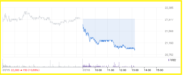 | 기업은행 | 20,950 | -1,050 | -4.77% |
