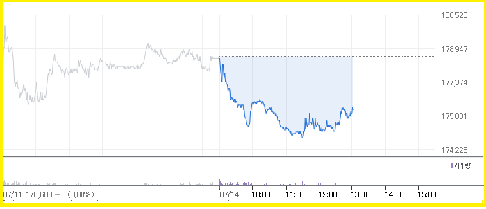 | 셀트리온 | 176,000 | -2,600 | -1.46% |