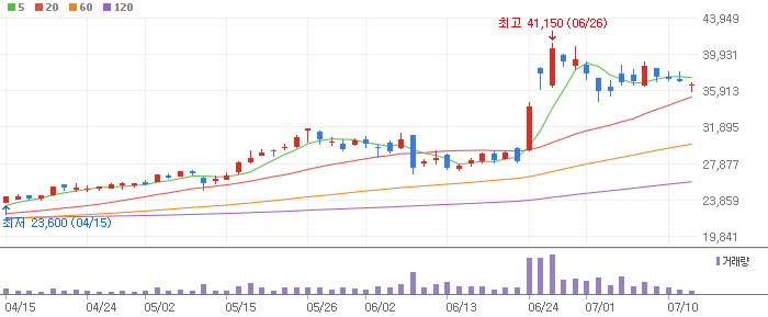 36,500원 선으로, 3개월 예상 수익률은 약 5